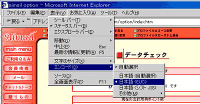 ブラウザ上部のメニューバーより「表示」をクリック。
